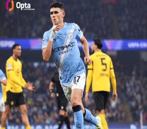福登第12次代表曼城英超远射破门,并列队史第四