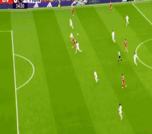 第24分钟,库尼亚精准长传右路,迪亚洛下底倒三角回敲,B费包抄劲射偏出立柱,利物浦险些再丢一球。