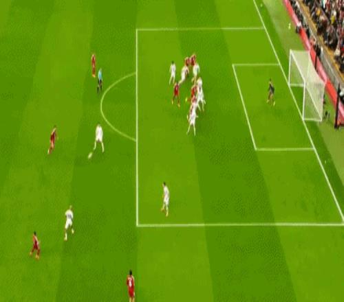第78分钟,维尔茨混战当中送出妙传,小基耶萨传中,加克波门前推射建功,利物浦终于扳平比分,1-1!