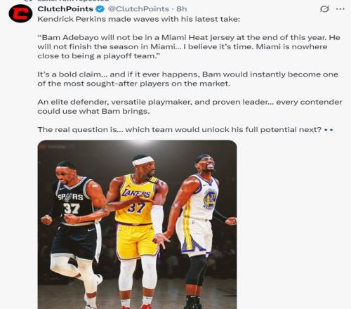帕金斯说道:阿德巴约今年年底就不会继续穿着热火球衣打球了,他这个赛季结束前会离开迈阿密,热火距离成为一支季后赛还差得很远。