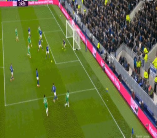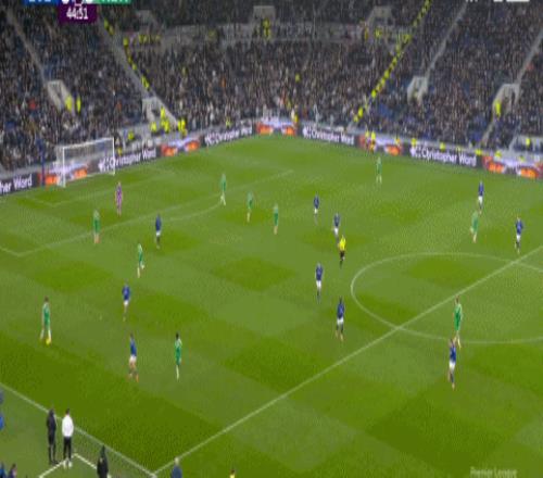 第69分钟,扳回一城,迪尤斯伯里-霍尔停球推射破门,埃弗顿1-4